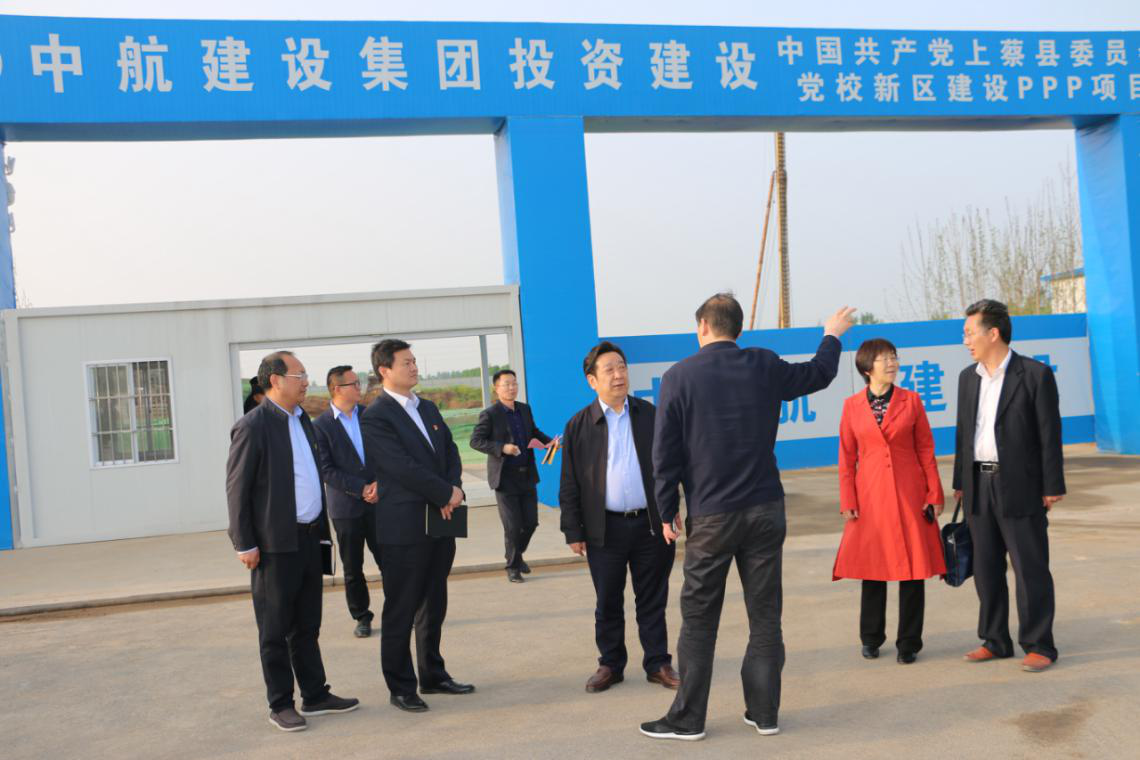 4月25日,河南省委党校党组书记、常务副校长焦国栋一行对上蔡党校新区建设PPP项目进行了调研,上蔡县委书记胡建辉、上蔡县中航建设运营有限公司总经理张剑陪同调研。