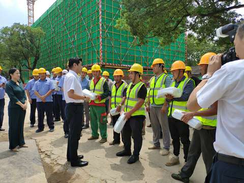 8月21日上午十一点,接近中午烈日炎炎,湘江集团党委书记、董事长张利刚一行来到开云·官方端网页版登录入口-开云(中国)承建的长沙科技创意园项目,现场看望慰问高温天气下依然坚守战斗在岗位上的广大建设者,为大家送来了冰箱、电风扇、凉茶、藿香正气水、夏桑菊、西瓜等防暑降温用品。