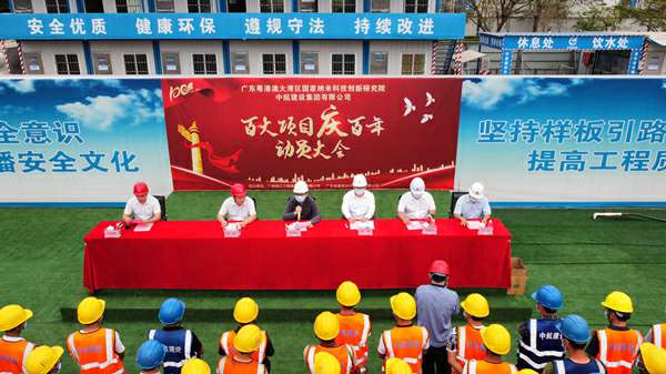 2021年3月29日上午,“百大项目庆百年”动员大会在集团公司承建的广州纳米生物安全中心总部园区一期项目现场隆重举行。建设单位广州纳米产业投资有限公司总经理李佩弦,广州珠江工程建设监理有限公司副总经理李晓光、分公司副总经理赵杰,广东省建筑设计研究院有限公司院副总工程师郭勇,开云·官方端网页版登录入口-开云(中国)南方工程有限公司总经理、项目总指挥徐刚,项目书记招国樑以及各专业分包单位相关人员参加活动。